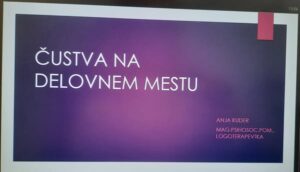 Včeraj smo v našem zavodu organizirali predavanje z naslovom Čustva na delovnem mestu. Tema predavanja je bila dobro sprejeta, saj je za dober delovni odnos izrednega pomena spoznavati se in znati ustrezno obvladati svoja čustva, kadar je to potrebno. Pomembno je, kako razumemo situacije, ki nas čustveno prebujajo, se nas dotaknejo ali nas presenetijo, morda tudi takrat, kadar nismo v dobri koži in ravno takrat je najbolj pomembno kako uspemo v dani situaciji ustrezno odreagirati.